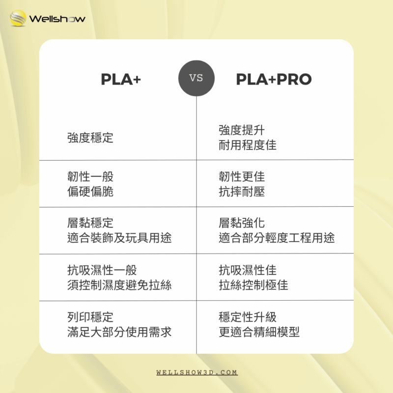 20 10 月 部落格 PLA+與PLA+Pro 差別在哪裡? 2025年 10月 30日 By system 從最早的純 PLA 到升級版 PLA+ 到這幾年我們都在持續研究「更穩定、更好印」 但對威秀來說,穩定不是終點,而是起點 PLA+Pro 介紹 這次重新推出的 PLA+Pro,在強度、層黏度、整體穩定性 都全面進化,更加耐潮、耐用,拉...繼續閱讀
